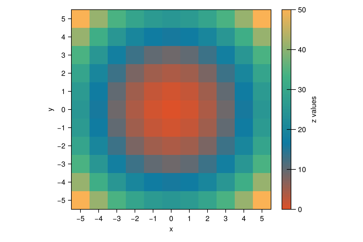 Colorbar(fig[1, 2], hmap, label = "z values", width = 15, ticksize = 15,