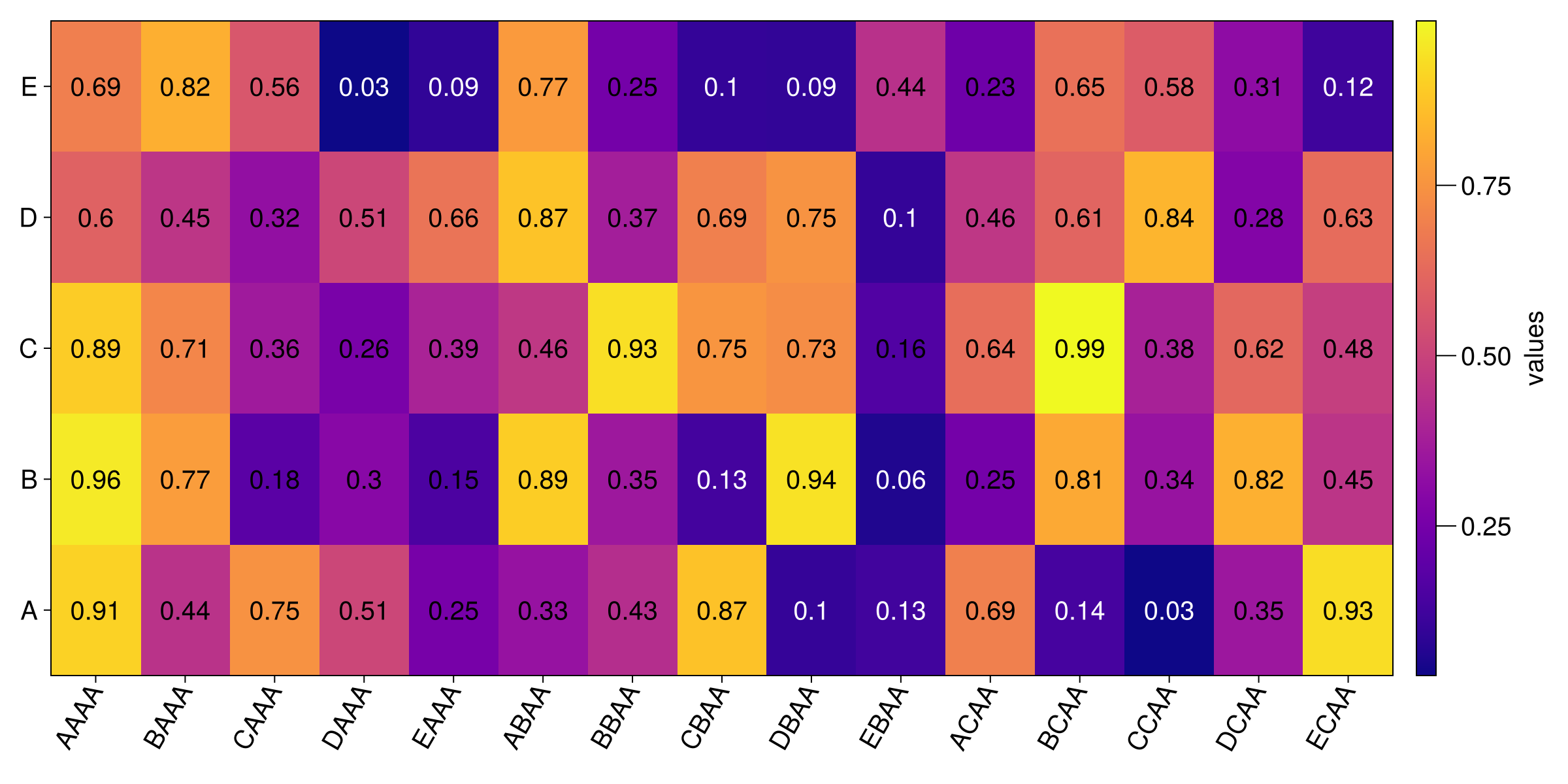 ax = Axis(fig[1, 1], xticks = (1:m, xticks), yticks = (1:n, yticks))